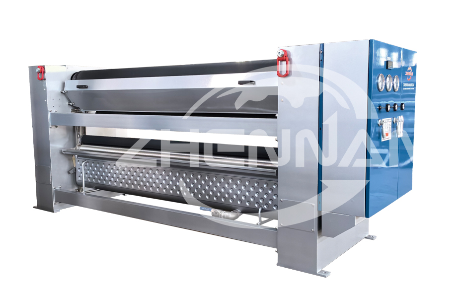 本產品供純棉、化纖及混紡織物浸軋染料、樹脂等工藝介質,并使保持一定的均勻軋余率,供后工序處理之用。(3)如果軋輥兩端氣壓載荷不等,那么氣壓較大端的線壓力會大于另一端。如圖(d)所示,軋染時會出現一邊深,而另一邊淺。